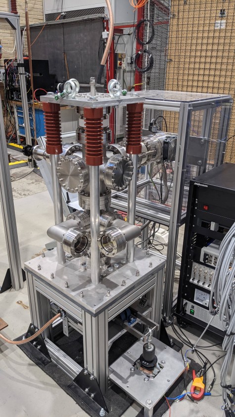 - UltraHighVacuum (UHV) test chamber, mainly consisting of commercial CF components with flat copper gaskets